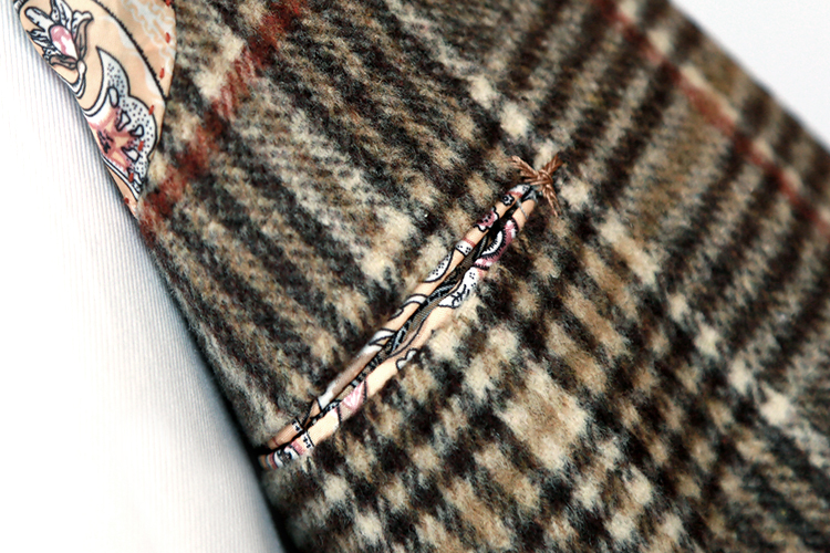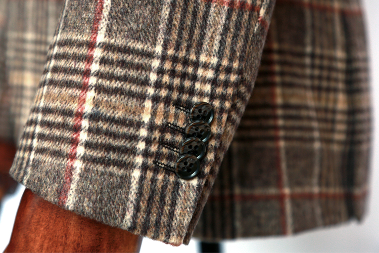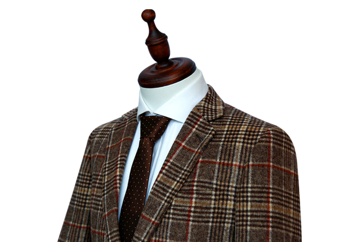 Blazer 1. Lapel:Notch lapel 2. Pocket:Flap pocket 3. Closing:Single-breasted, 2 buttons 4. Sleeve buttons:4 sleeve buttons sewed in horinzontal form 5. Breast Pocket:normal 6. Back vent: side vents 7. Lining:TR lining 8. Characteristic:checked fabric |